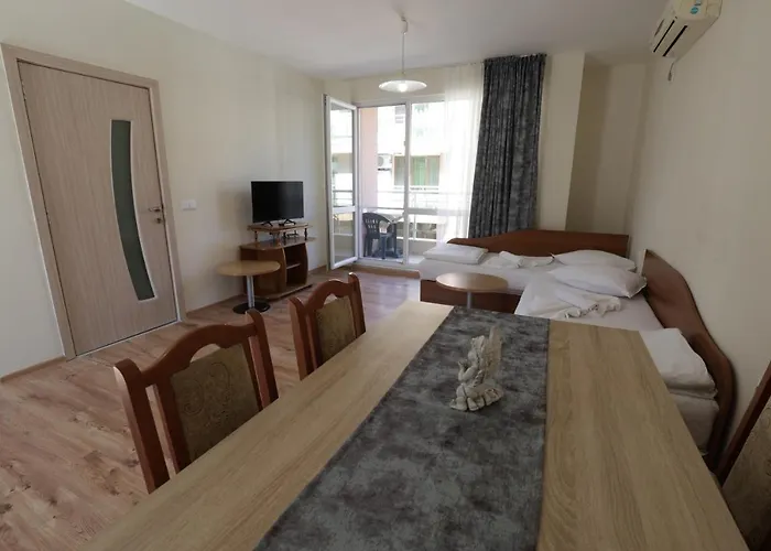 La pequeña cocina, equipada сon servicio de tetera/cafetera y un hervidor eléctrico, una nevera y cristalería, es perfecta para preparar comidas. Bien comunicada con numerosos lugares de interés, esta propiedad está a unos metros de la estación de autobuses Pomorie Station-Pomorie-Taxi. Los huéspedes tienen la oportunidad de disfrutar de parque acuático y terraza para hacer más agradable su estancia.